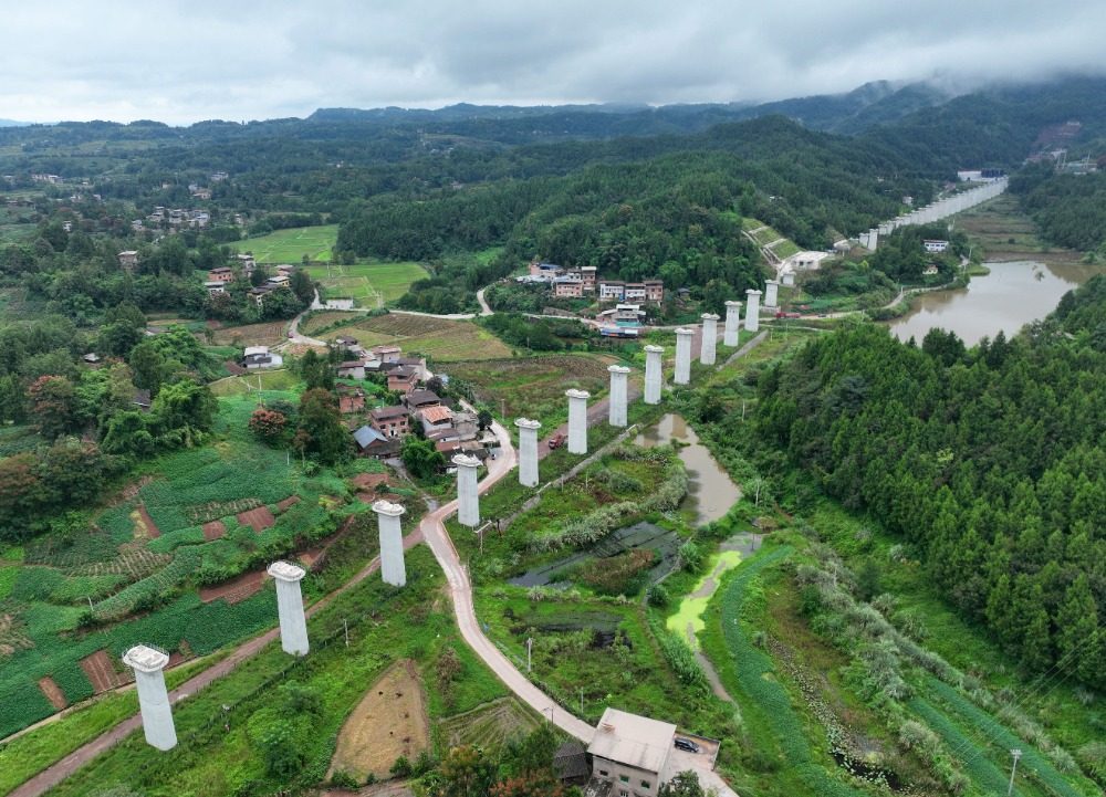 9月21日,义学村双线大桥下部结构已完工,即将进入架梁施工阶段。记者 罗斌 摄