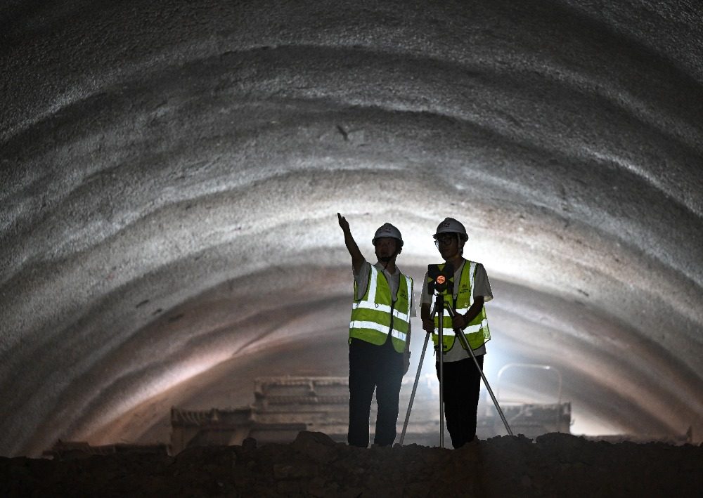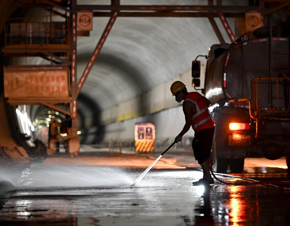9月21日,苏家坪隧道内,技术工人正在进行贯通后的清扫施工。记者 罗斌 摄
