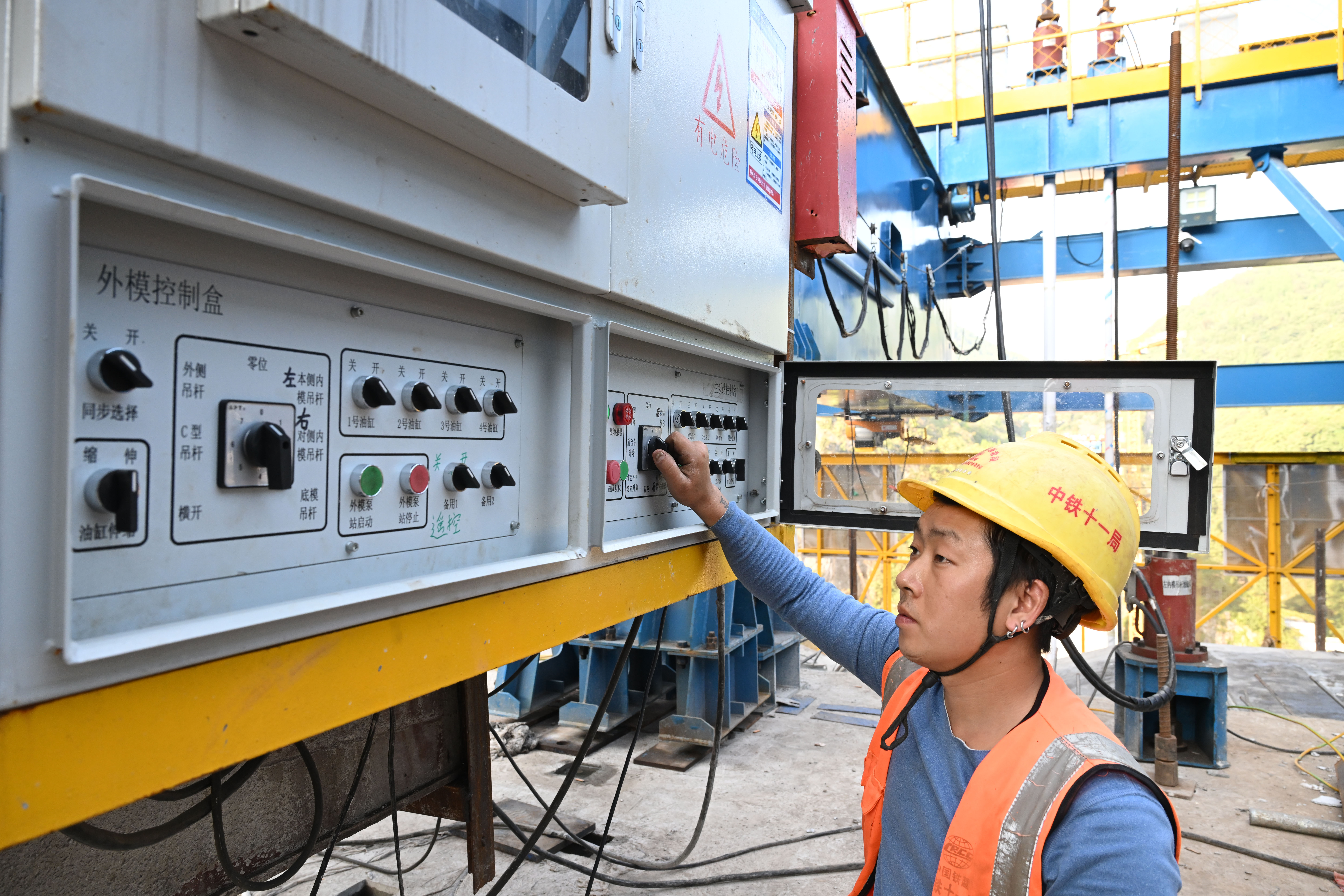 10月28日,在中铁十一局西渝高铁康渝段重庆枢纽1标项目建设现场,技术工人正在操作智慧悬臂造桥机向前推进。记者 罗斌 摄