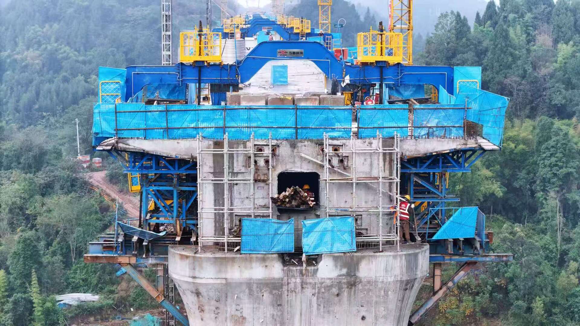 据中铁十四局成渝中线项目经理孙鑫广介绍,一碗水双线特大桥最高墩达63.5米,相当于21层楼高,建设团队利用“液压爬模技术”进行混凝土浇筑,逐层逐级控制墩身垂直精度,通过智能监测功能,实时监测爬模姿态和墩身变形,确保高墩施工“毫米级”精度控制。同时,创新应用智能悬臂造桥机,对模板实施智能纠偏,且保障了梁体线形质量,为大跨度梁体精准合龙提供技术支撑。