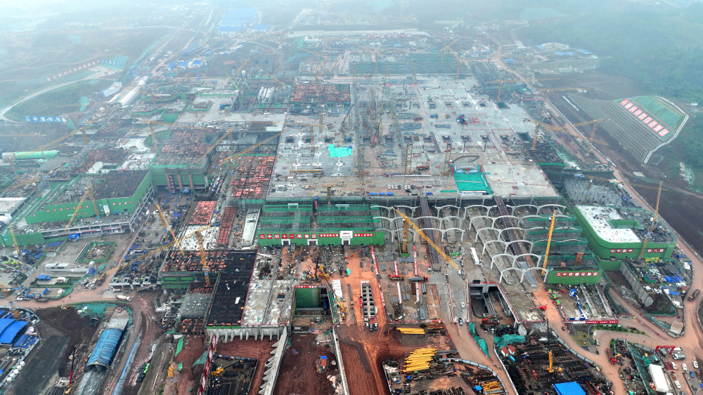 重庆东站1标段主体结构封顶 建成后将有5条高铁始发