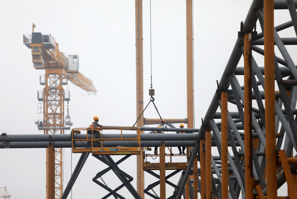 5月19日,重庆东站站房及配套综合交通枢纽工程1标段主体结构正式封顶,技术工人开始进行钢结构施工。 记者 罗斌 摄/视觉重庆