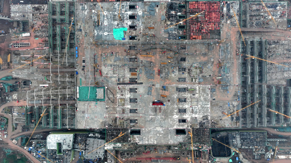 5月19日,重庆东站站房及配套综合交通枢纽工程1标段主体结构正式封顶。 记者 罗斌 摄/视觉重庆