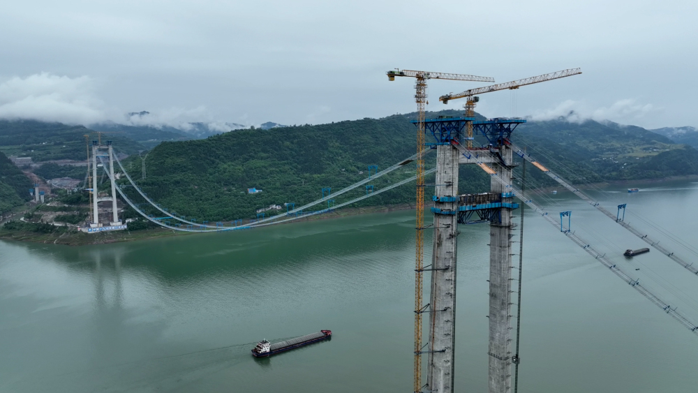 据中国十九冶江龙高速项目生产经理刘俊辰介绍,复兴长江大桥是设计主跨为1208米的钢箱梁悬索桥,桥梁全长1543米,是目前长江上游在建最大跨径悬索桥。预计在6月底完成全部主缆架设后,于9月开始钢箱梁吊装施工。