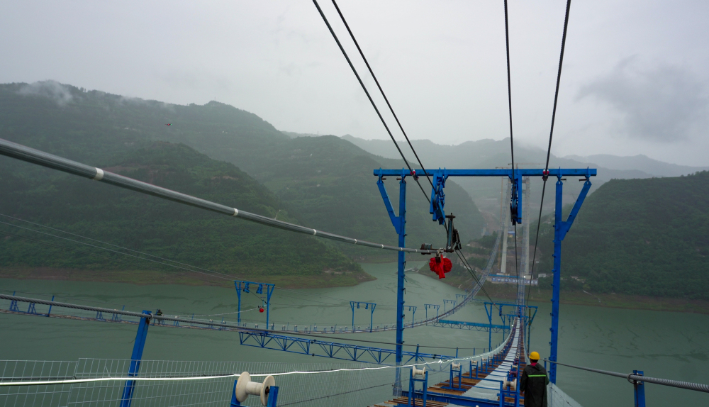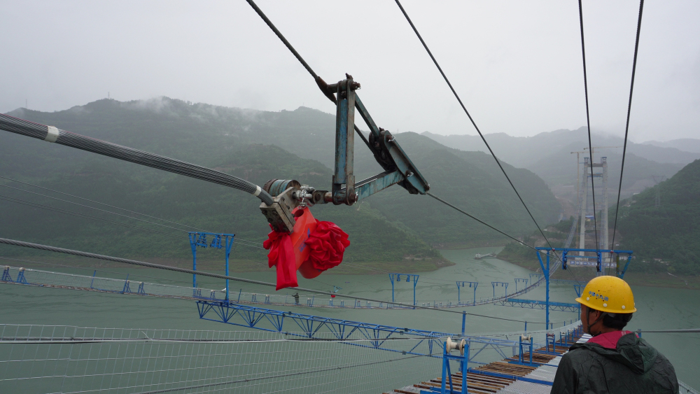 5月22日,江龙高速控制性节点工程——复兴长江大桥首根主缆索股顺利完成架设,标志着长江上游最大跨径悬索桥开始进入主缆架设阶段。
