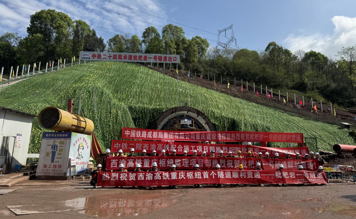 4月3日,西渝高铁重庆枢纽段首座隧道——枇杷岩一号隧道顺利贯通,标志着西渝高铁建设取得新进展。