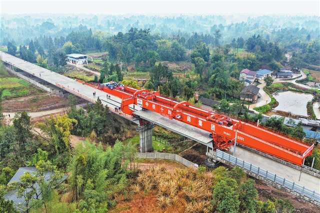 成渝中线高铁重庆大足段架梁完成