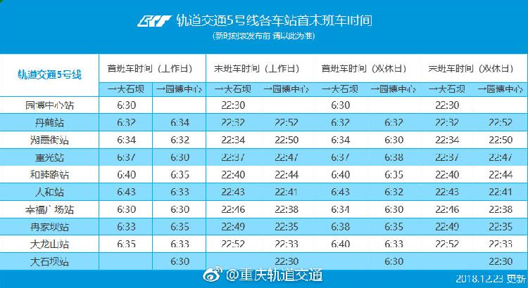 5号线大石坝站投用 这张首末班时间表请收好!