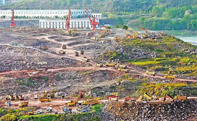 4月6日,涪陵龙头港码头泊位土石方基础工程开挖施工加紧进行。涪陵龙头港是重庆市打造内陆开放高地、国际性综合交通枢纽的重点工程,规划建设5000吨级泊位20个。整个工程计划分5期完成,目前通过一、二期工程建设,部分泊位已投入运行。(特约摄影 钟志兵/视觉重庆)