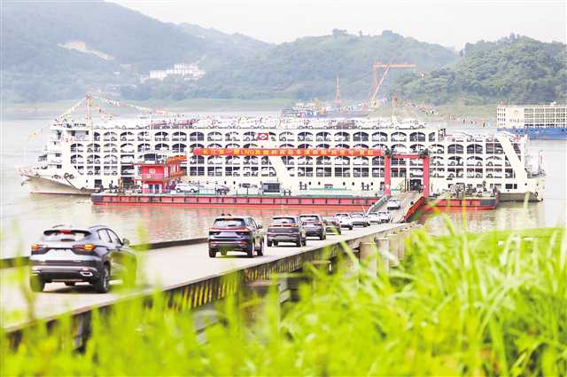 6月21日,长江第一艘LNG(液化天然气)双燃料商品汽车滚装船“民生号”,满载900辆商品车从果园港滚装码头启航,驶向武汉。 据估算,LNG作为船舶燃料使用,相比传统的船舶燃料能减少近100%的硫氧化物排放、85%的氮氧化物排放,20%的温室气体排放和接近80%的颗粒物排放,对船舶节能减排具有重要意义。(杨永芹 罗斌 摄影报道/视觉重庆)