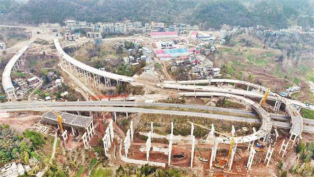 三月二日,渝湘复线高速酉阳铜西互通工地现场,工人正加紧施工。通讯员 邱洪斌 摄\视觉重庆