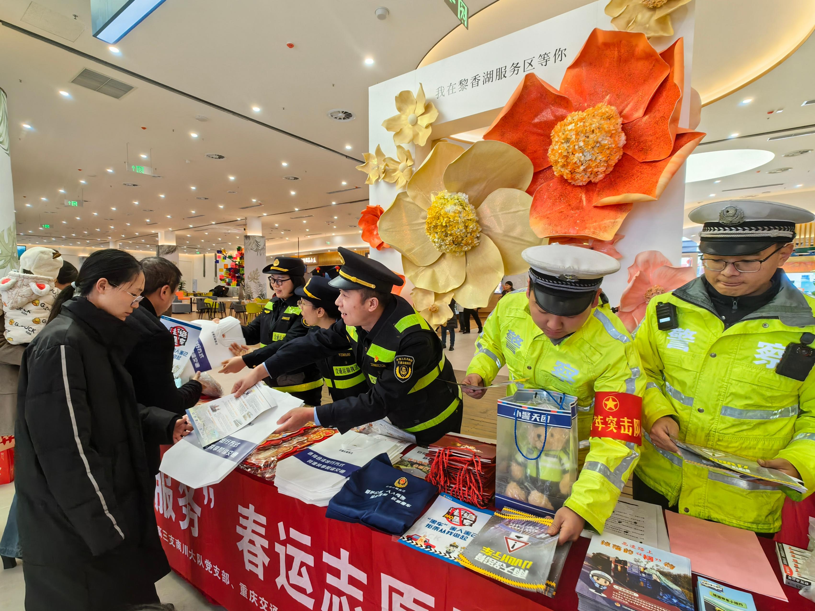 2月12日,市交通运输综合行政执法总队高速公路第三支队(以下简称第三支队)联合辖区高速交警、营运公司管理中心,在G65包茂高速、S3渝湘复线高速开展“元宵送暖 情满旅途”党建联建志愿服务和普法宣传活动,与司乘朋友一同欢欢喜喜闹元宵,用贴心服务温暖返城旅途。