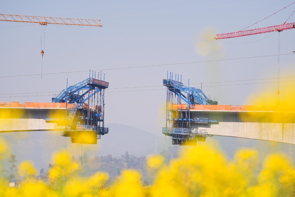 3月26日,位于北碚区的西渝高铁沙湾特大桥正在加紧施工建设。特约摄影 秦廷富