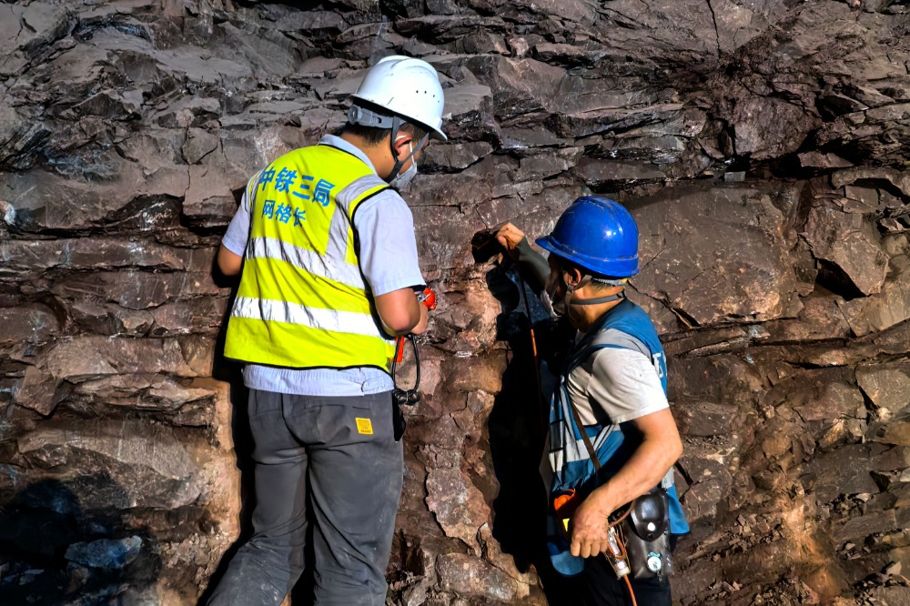 5月8日,渝万高铁忠县段,工人们在任家山隧道进行炮眼施工作业。通讯员 赵军 摄