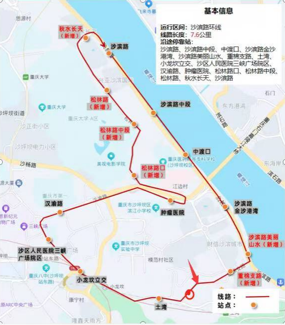 沙坪坝区开通沙滨路环线公交 串联7.6公里、16站点