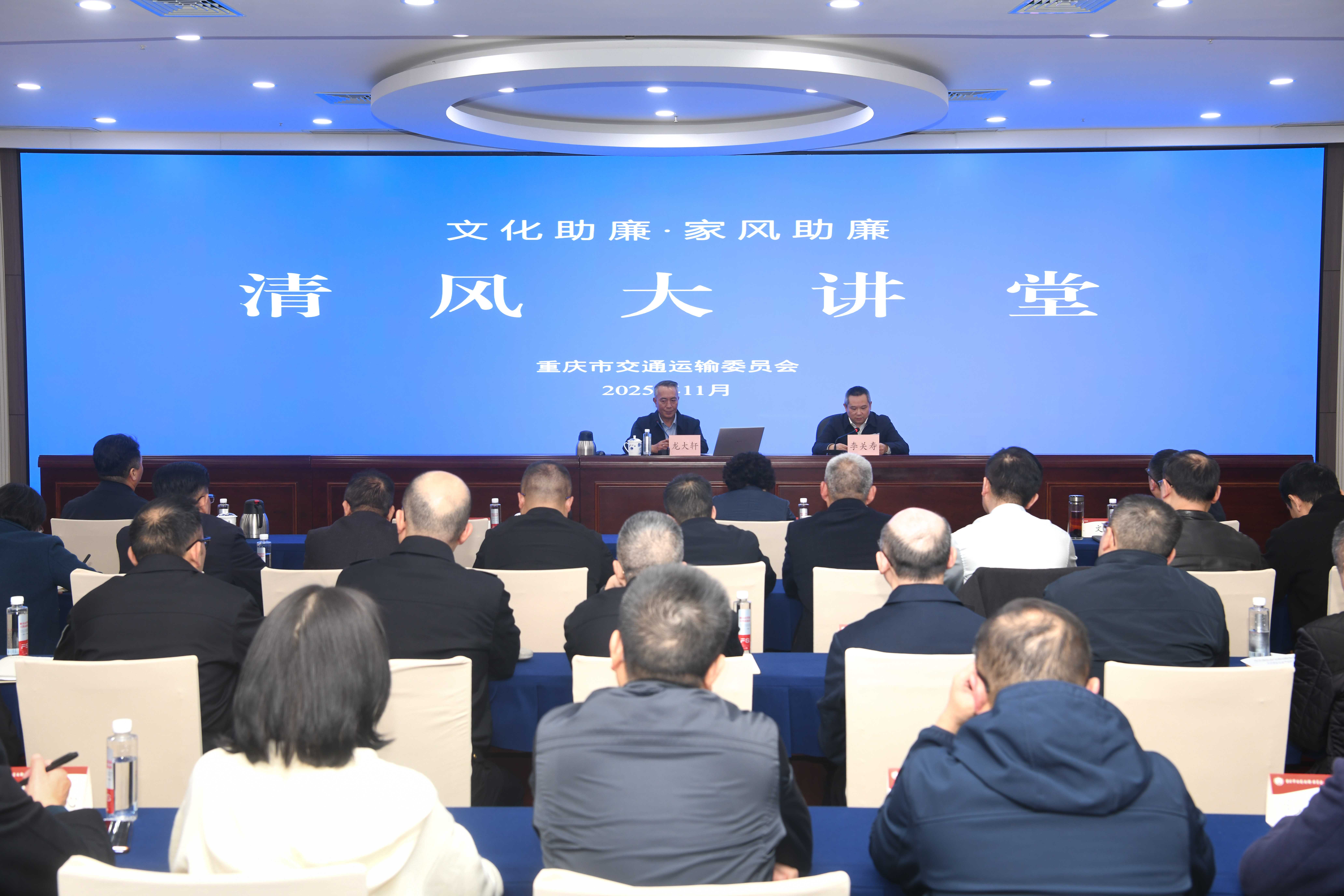 11月18日,市交通运输委举办首期“清风大讲堂”,邀请西南政法大学二级教授、博士生导师龙大轩作专题讲座,委党委专职副书记李关寿主持。在家委领导、委属单位领导班子成员、委机关处级以上领导干部及部分家属代表、新进职工代表共110余人参加本期大讲堂。