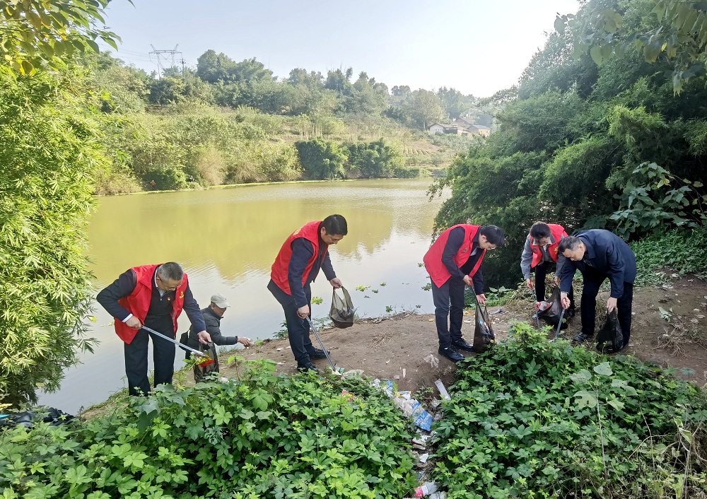 活动首先在璧南河高洞桥段开展巡河护河志愿服务。志愿者们手持清洁工具,沿河道徒步巡查,细致清理沿岸塑料包装、烟头、枯枝杂草等散落垃圾,并对高洞桥水质监测断面的水体状况及周边环境进行了实地查看。过程中,大家主动向沿岸垂钓人员和过往群众宣传河库保护知识,讲解维护水生态环境的重要意义,积极引导群众共同参与母亲河保护,生动践行党员志愿者作为“宣传员、巡查员、联络员”的职责使命,展现交通系统党员在生态文明建设中的务实作风与责任担当。