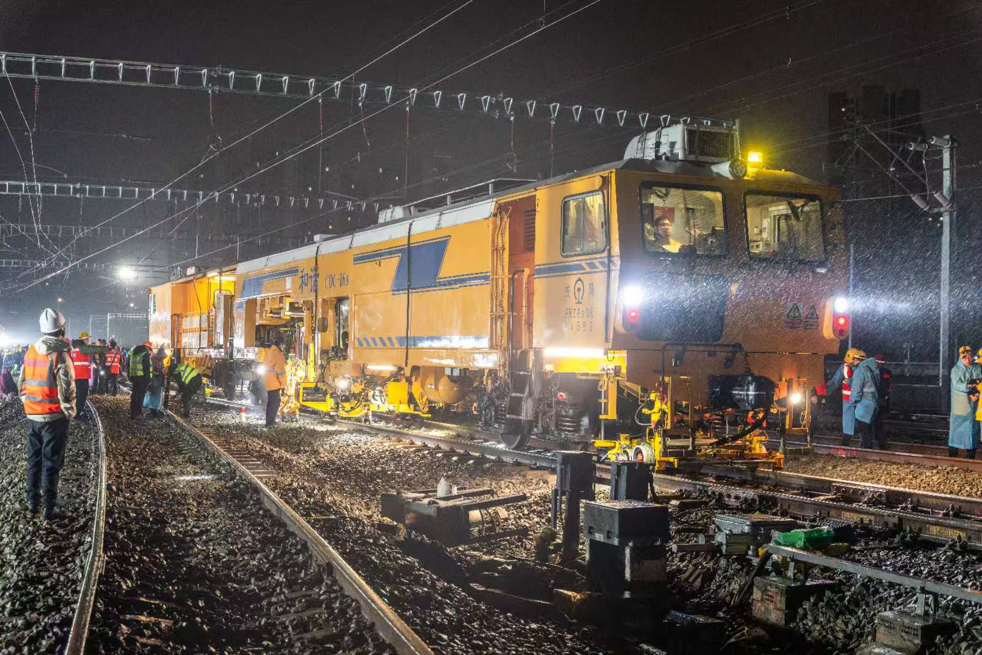 12月22日,在重庆北站多个施工点分时段开工,来自中铁五局、重庆工电段、成都工务大机段、成都电务维修段等多家单位,1200余名施工人员、60余台套机械设备,按照既定方案组织实施,施工中,拆除线路、起道、拨道、捣固、钢轨接头焊接、大机捣固、机车压道等工序衔接自如,经过1050分钟的艰苦鏖战,共完成3处施工作业面,拆除既有道岔3组,新开通线路2.67公里,启用新道岔12组,顺利完成重庆北站渝利场10道拨移、渝万场东端咽喉岔改及动走联络2线岔改的Ⅰ级施工。