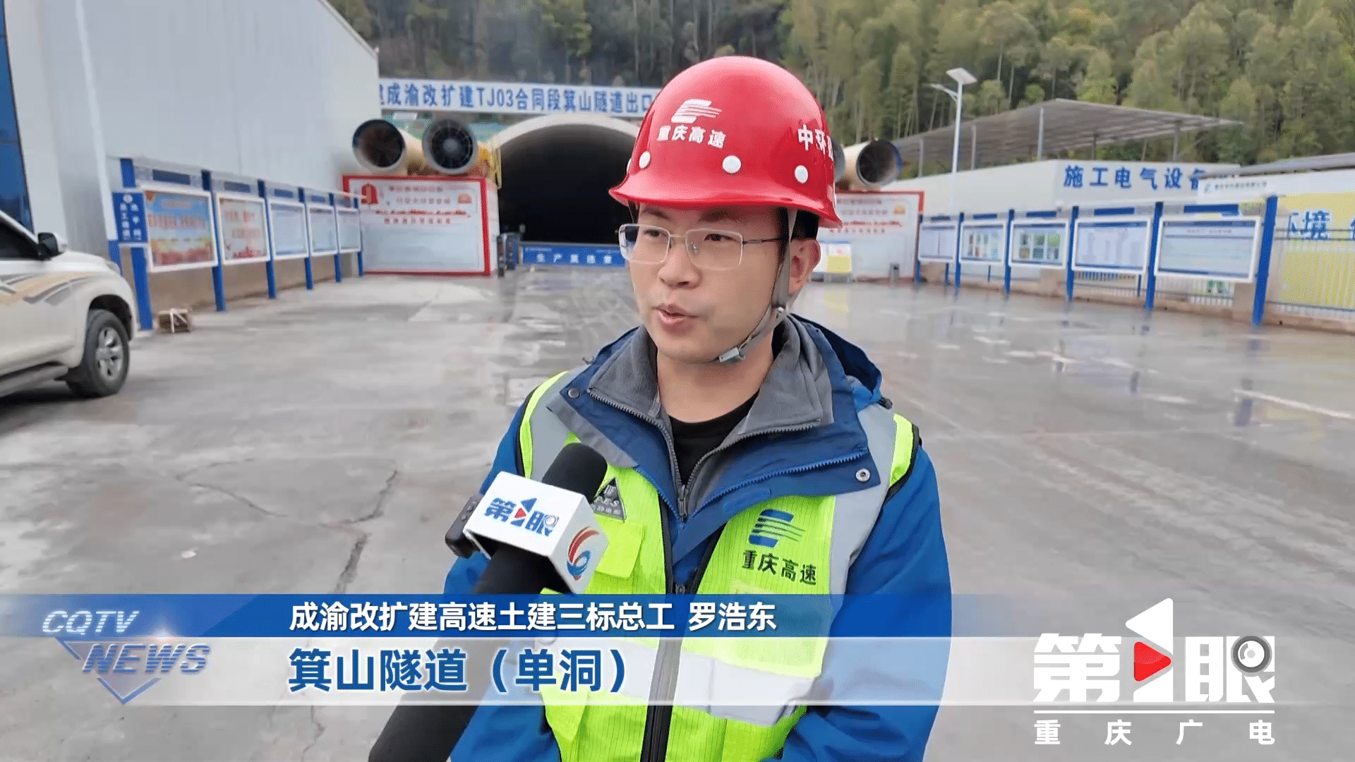 成渝改扩建高速土建三标总工罗浩东介绍,箕山隧道单洞最大开挖断面达到233平方米,是重庆市在建高速公路最大断面隧道,建成后,单洞可达四车道的通行效果。