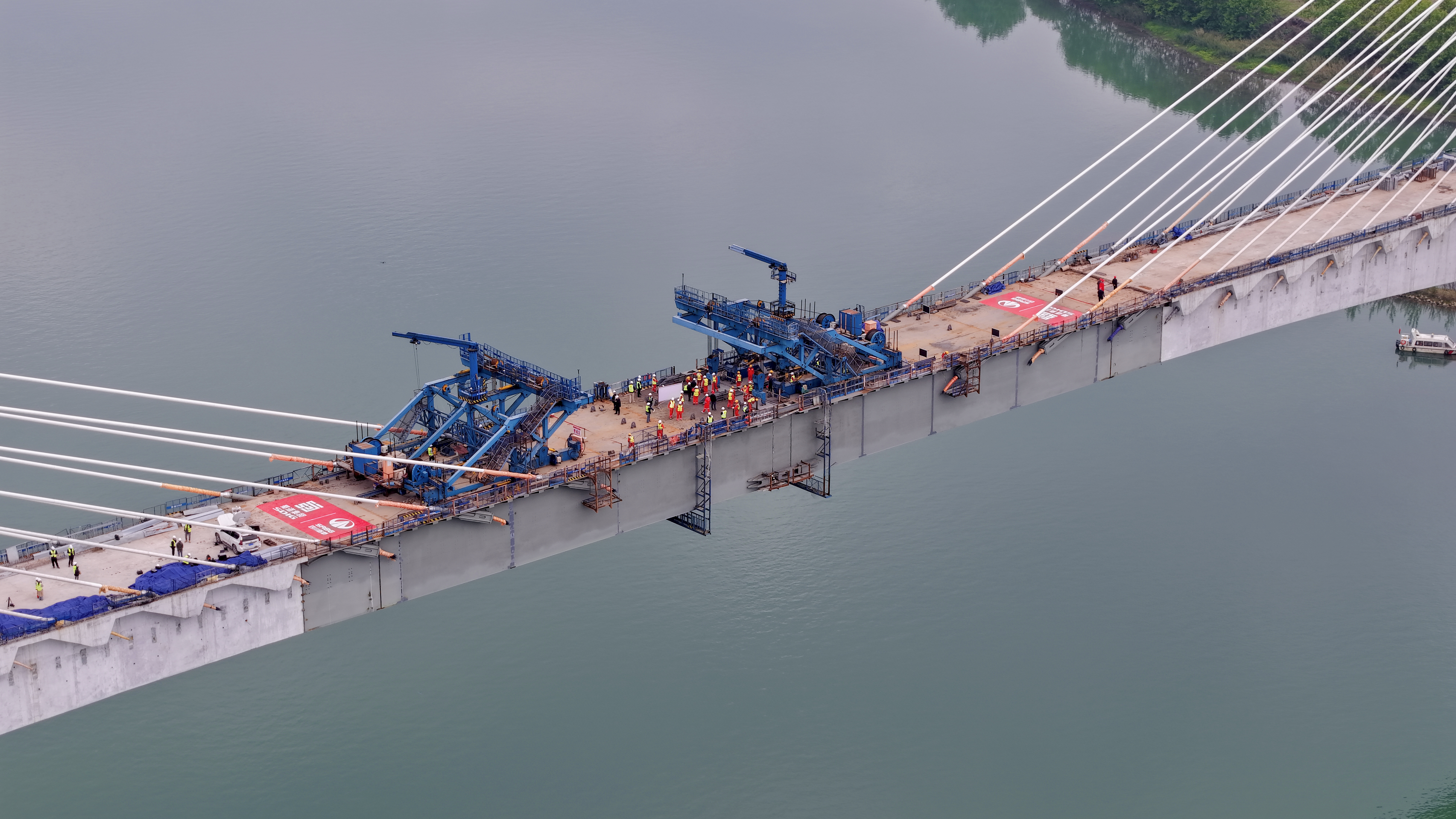 为确保合龙的精准可控,项目团队进行了提前谋划、周密部署。针对大跨度斜拉桥合龙段受力复杂、温度变形敏感、精度控制要求高等技术难点,团队选择夜间“温度低、温差小”时段进行合龙,有效减少温度变化引起的结构变形,并通过线形监控、劲性锁定等关键技术措施,最终将线形精度控制在毫米级范围,实现高质量合龙。