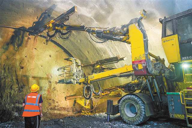 长岭岗隧道是新渝万高铁全线最长的Ⅰ级高风险隧道。“长岭岗隧道设计为单洞双线隧道,隧道全长13325米,穿越岩溶、瓦斯、断层破碎带等不良地质,施工难度大,堪称一座‘地质博物馆’。”中铁十二局新渝万高铁项目经理隋洪涛介绍。