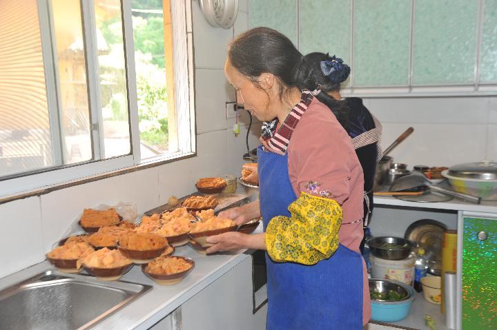 两年前,57岁的花仁淑在家里开了个食宿一体的农家乐。“今天中午预订了3桌客人,我得多准备一些菜。”花仁淑告诉记者,她家的扣碗肉很受客人欢迎,常常不够吃,为了满足需要,今天她做了30多碗。