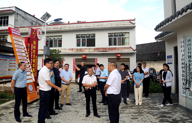 7月9日,忠县交通局党员干部在巫山县下庄村参观学习修通“天路”、脱贫攻坚事迹。