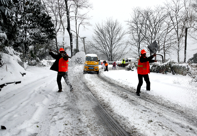 在国道319线山尖石路段,应急抢险队伍加紧行动,出动融雪撒布车5台次,应急抢险队员80人次,2小时内抢通,确保了高速公路滞留车辆正常分流。在省道522线凉风垭段,应急队伍更是格外关注,因为县屠宰场在涂市镇大杉村,凉风垭路段是县城十多万市民每天食用鲜肉的唯一供给线。“抢通522线凉风垭路段,是每年低温雨雪天气的一个规定动作,快速处置县城通往屠宰场的公路,避免和减少县城市民生活少受雪灾影响。”1月26日以来,交通应急抢险队伍以雪为令,连续作战,保持省道522线凉风垭路段全线畅通,有力保障了市民生活物资的运输。