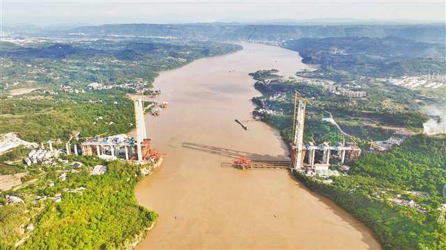 10月5日,世界最高双联主塔——石沱长江大桥6号主塔顺利封顶。至此,大桥两座主塔全部封顶,为后续全线按期建成通车打下坚实基础。