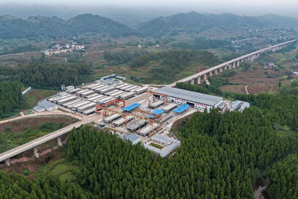 位于丰都县十直镇的制梁场是渝万高铁全线产能最大的制梁场。丰都县融媒体中心供图