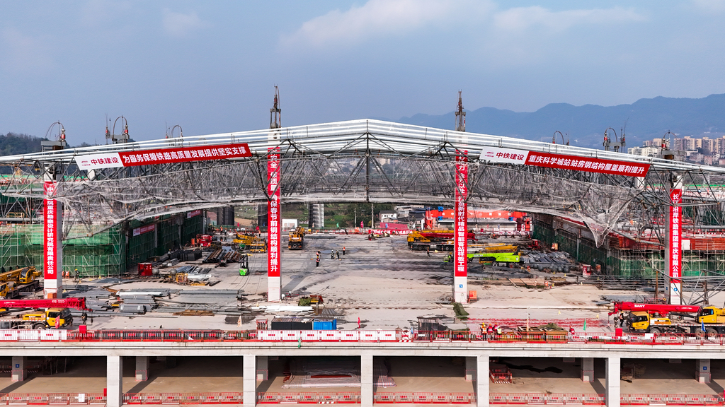 成渝中线迎重要节点 重庆科学城站顺利完成站房钢结构屋盖首次提升