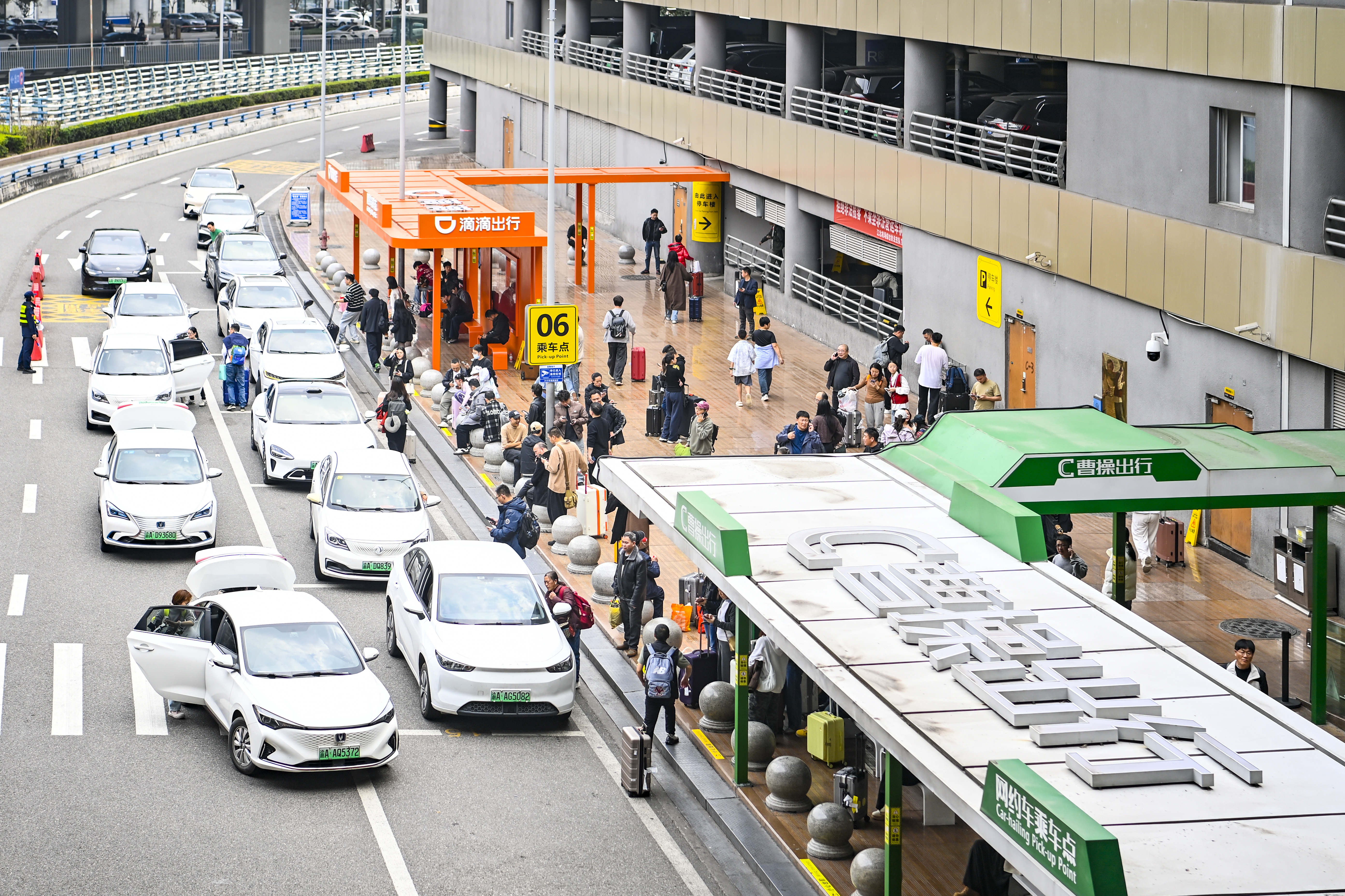 2月23日,重庆江北国际机场,不少乘客在网约车上车点等候上车。记者 齐岚森 摄