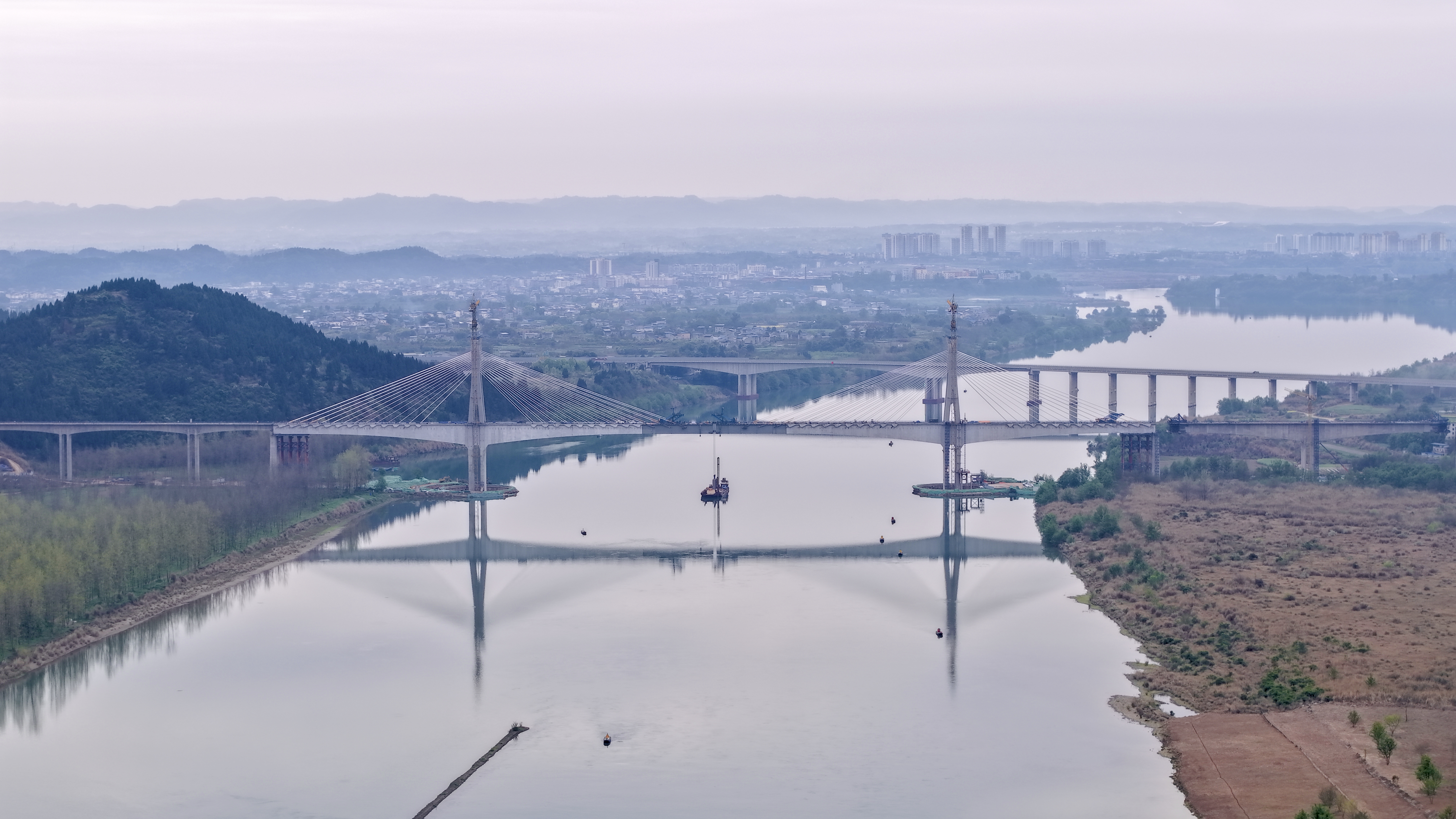 在主桥塔柱和墩身等主体结构施工阶段,项目同样克服了诸多技术难题。成达万高铁公司遂宁建设指挥部指挥长李升平介绍,面对主墩施工中桥梁线型控制难、混凝土布料及振捣难、索导管安装定位难等挑战,项目部引入了莱卡TS60高精度全站仪,实时监控塔柱形态,确保线型精度。针对上塔柱外侧独特的凹槽设计和密集的预埋件与钢筋,项目运用三维建模技术,数字化模拟预埋件与钢筋位置,并优化混凝土配合比,确保了结构强度与外观质量。