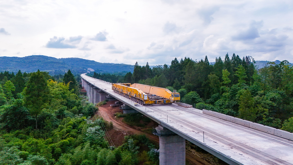 中铁五局作业人员正在架设西渝高铁康渝段谢家院子大桥。受访单位供图