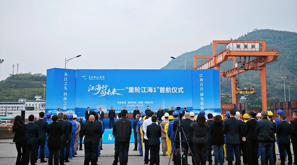 11月11日,由重庆轮船(集团)有限公司投资、中江船业有限公司自主设计建造的重庆首艘江海直达船“重轮江海1”,装载着涪陵华峰化工的5000吨己二酸,在涪陵黄旗港鸣笛启航,发往浙江舟山,开启重庆航运史上具有里程碑意义的新篇章。