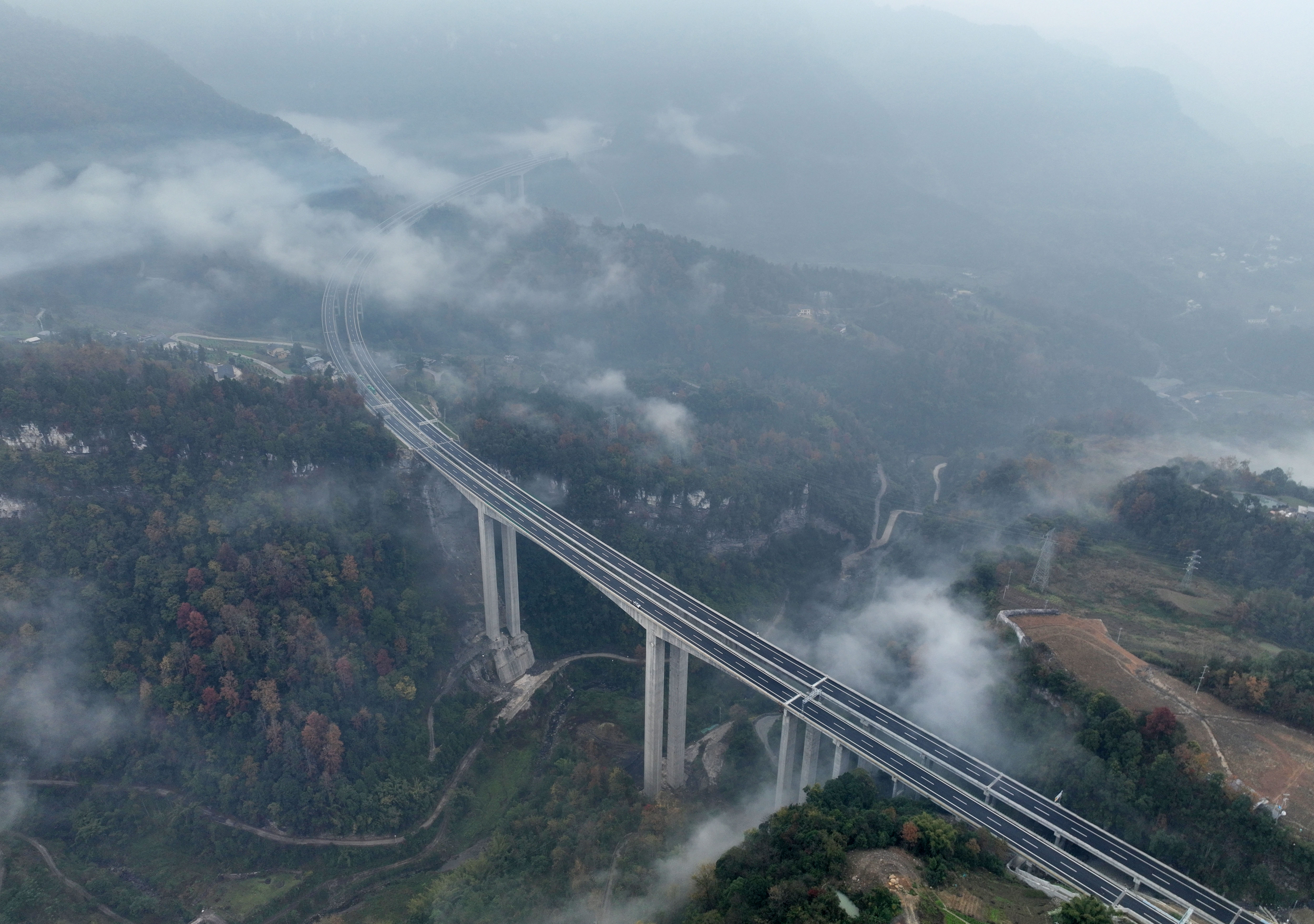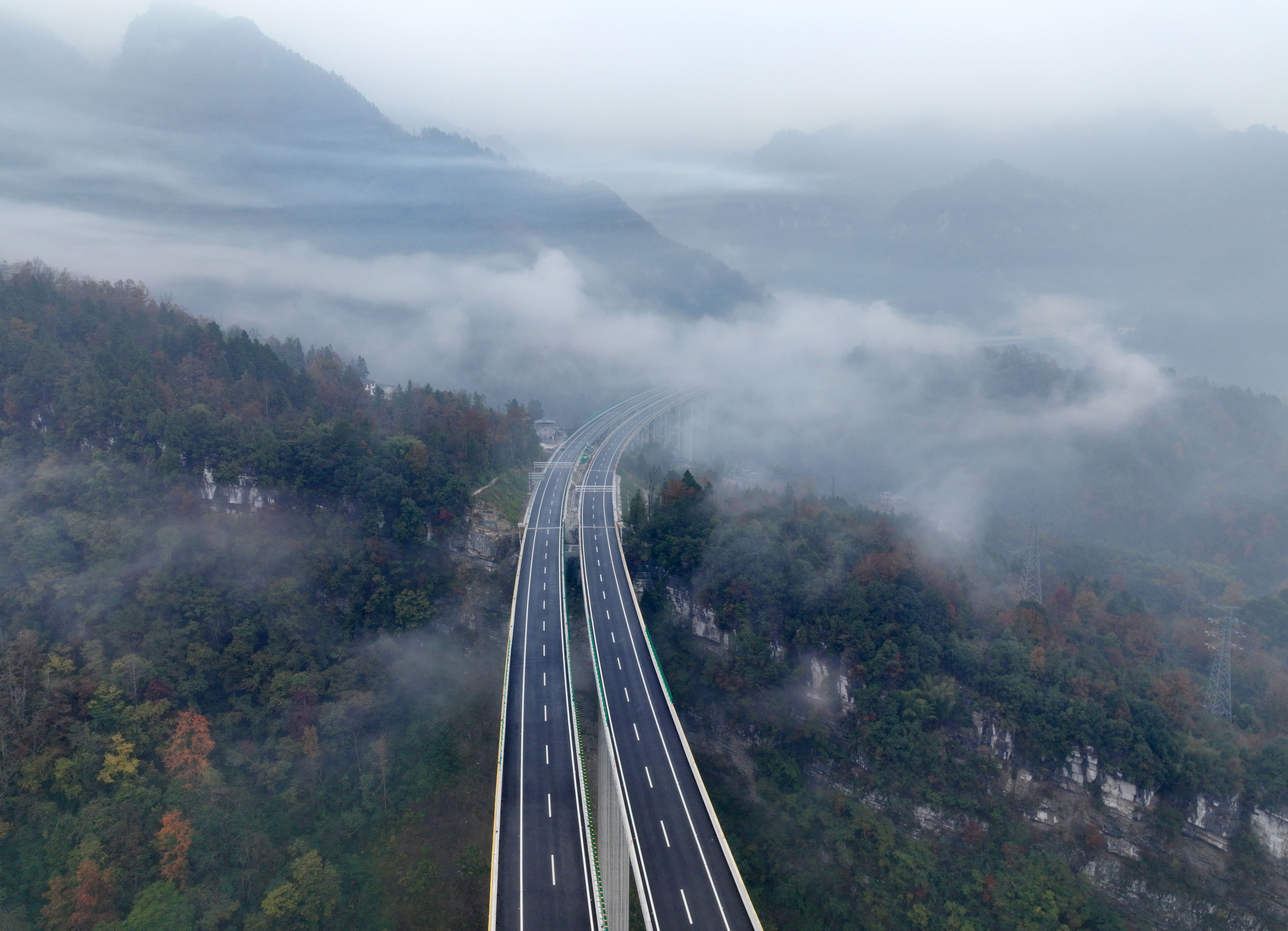 12月16日,渝湘高速复线武隆至道真段云雾缭绕。记者 罗斌 摄