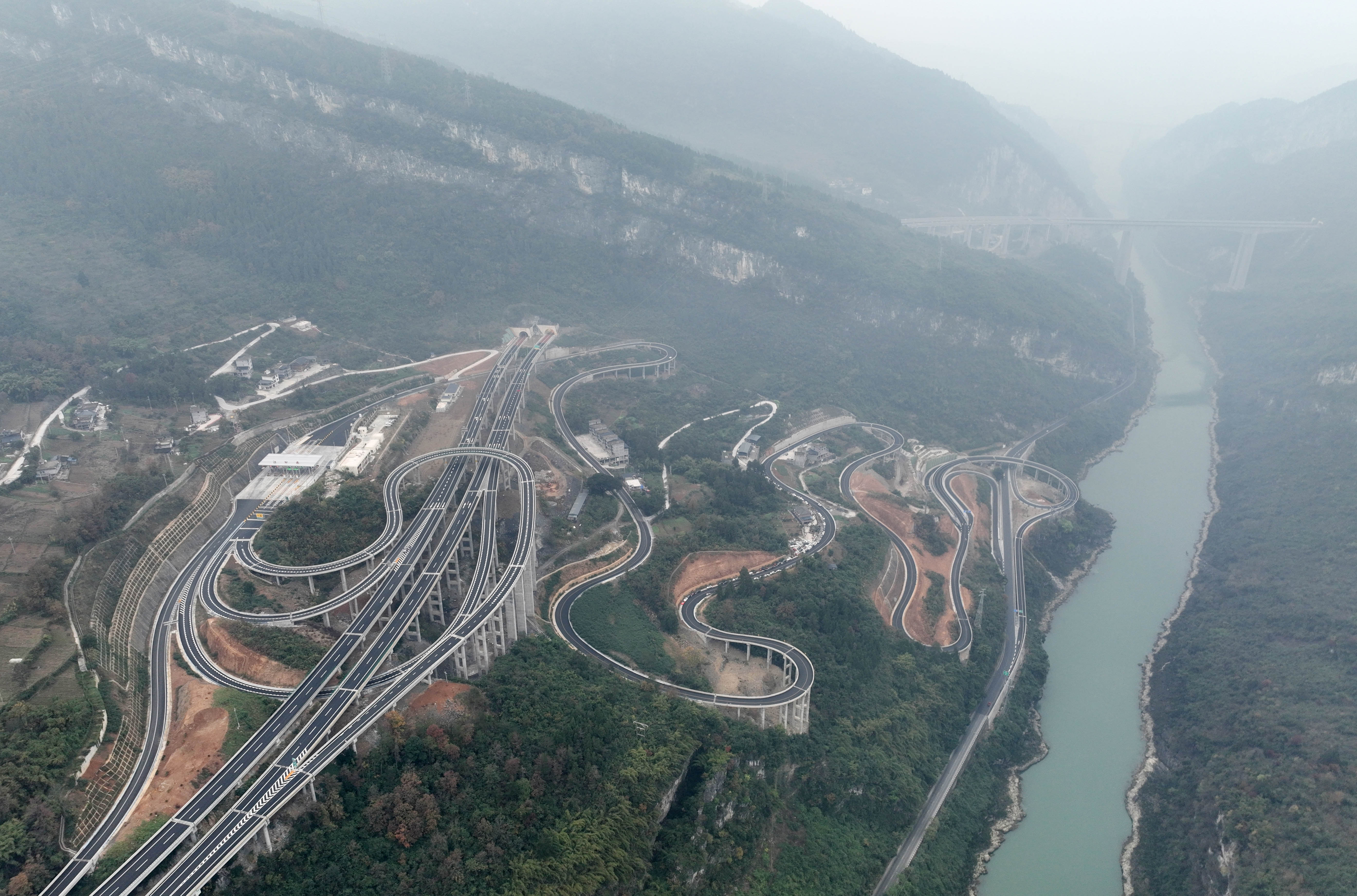 12月16日,渝湘高速复线江口互通如同巨龙在大山间蜿蜒。记者 罗斌 摄