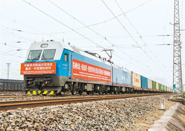12月15日,两江新区鱼嘴铁路货运站同时发出重庆—中亚、重庆—东南亚两趟国际班列。这两趟班列依托中新多式联运示范项目开行,标志着新加坡参与重庆开放通道建设程度不断加深。