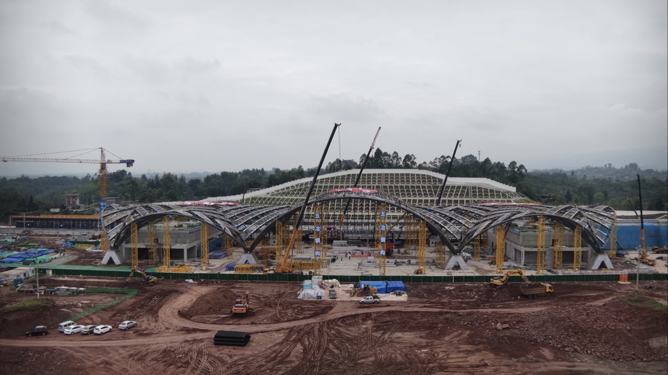 成渝中线高铁铜梁站站房主体结构完工