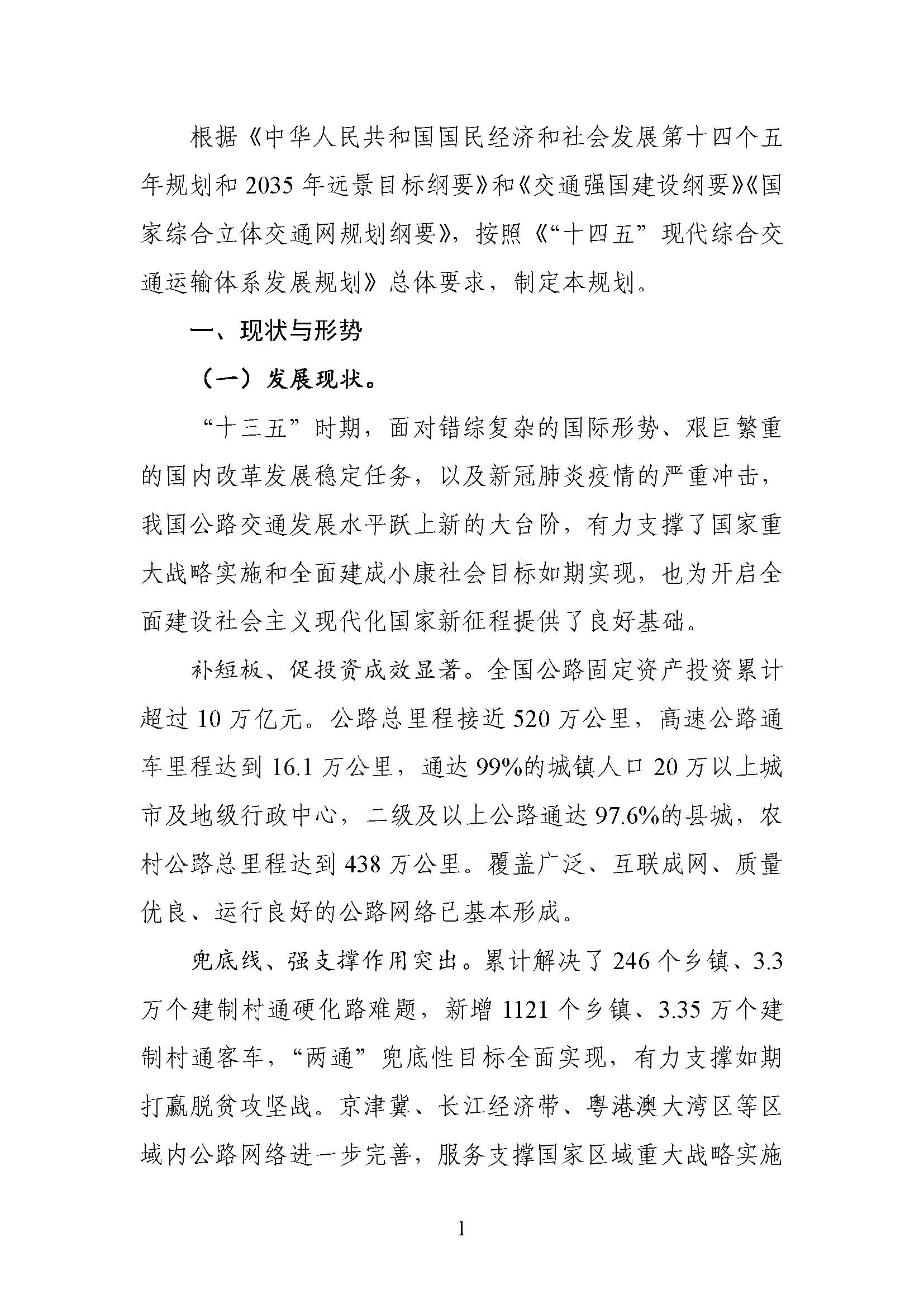 公路“十四五”发展规划