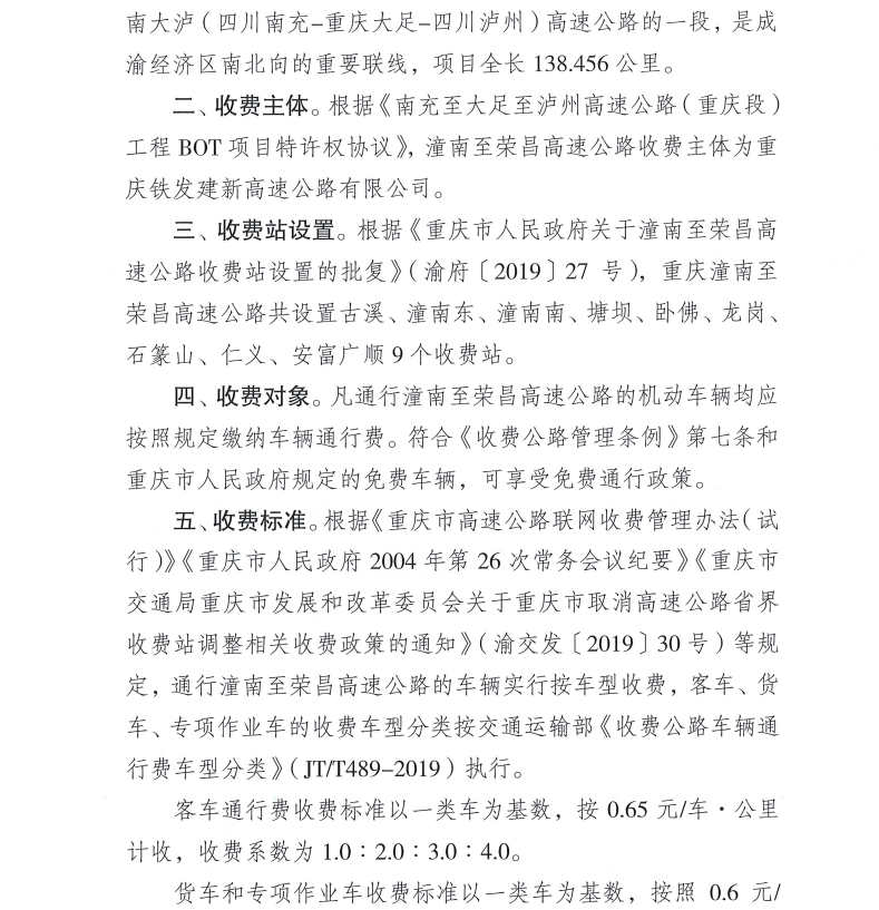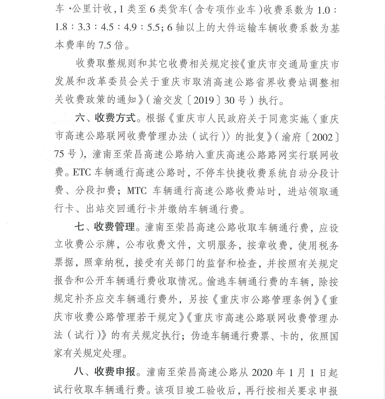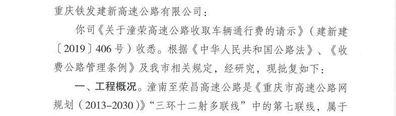重庆市交通局 重庆市发展和改革委员会关于潼南至荣昌高速公路试行收取车辆通行费的批复