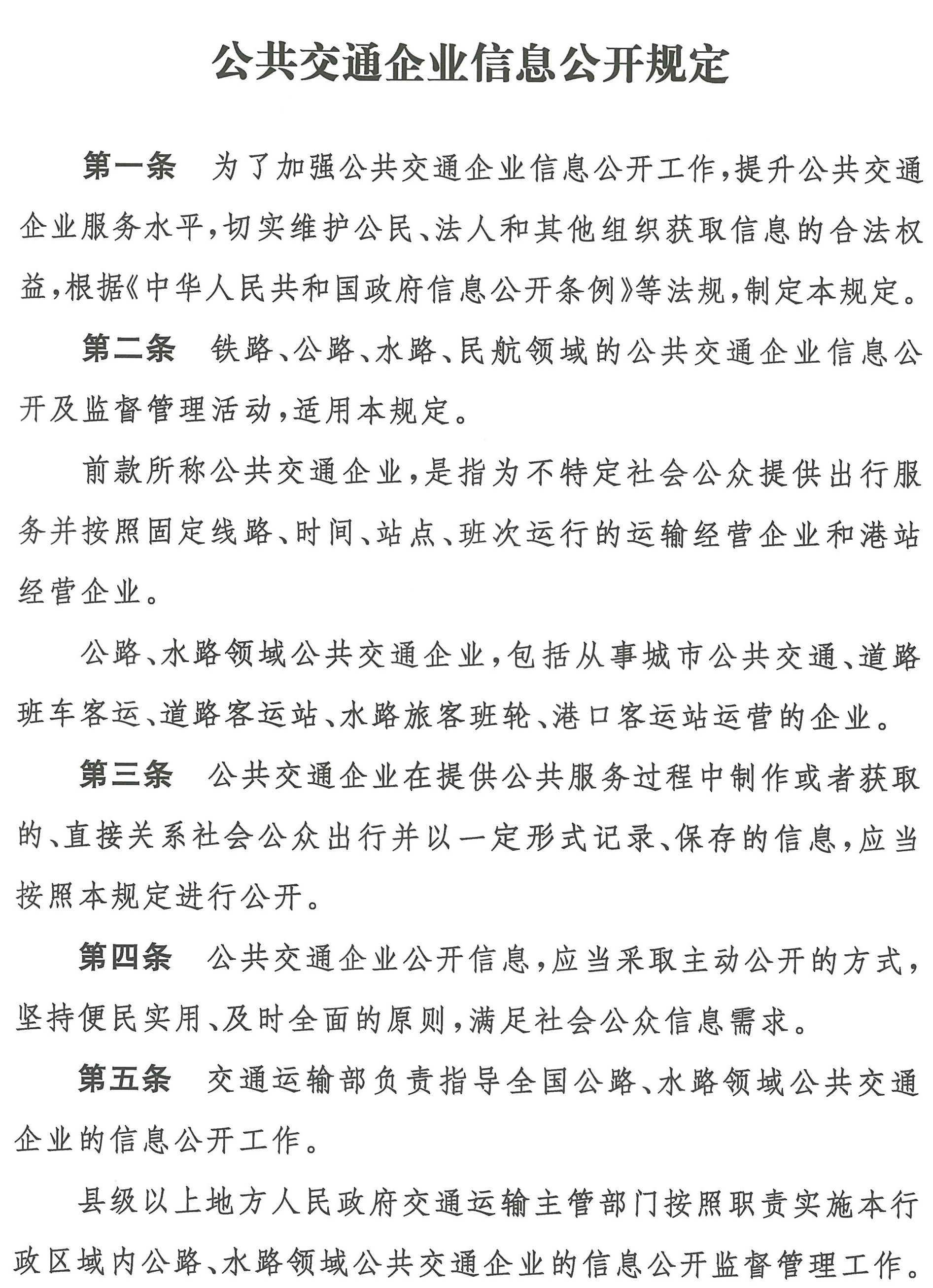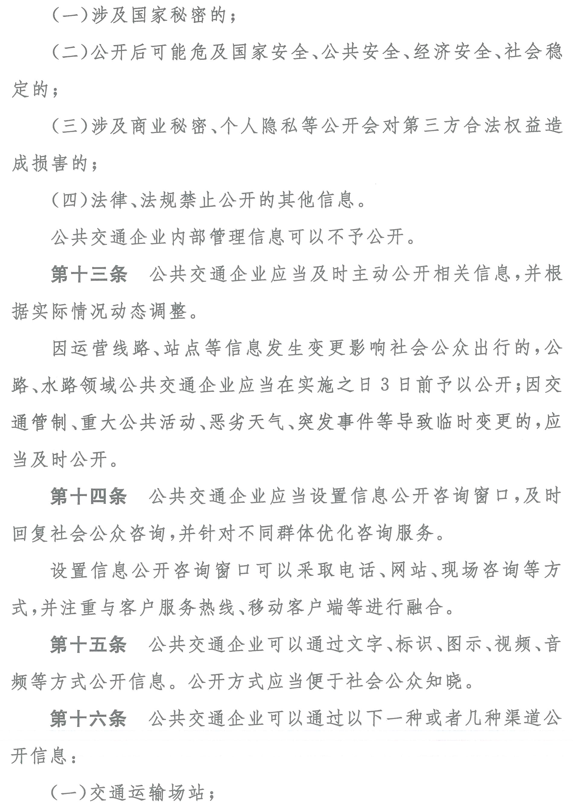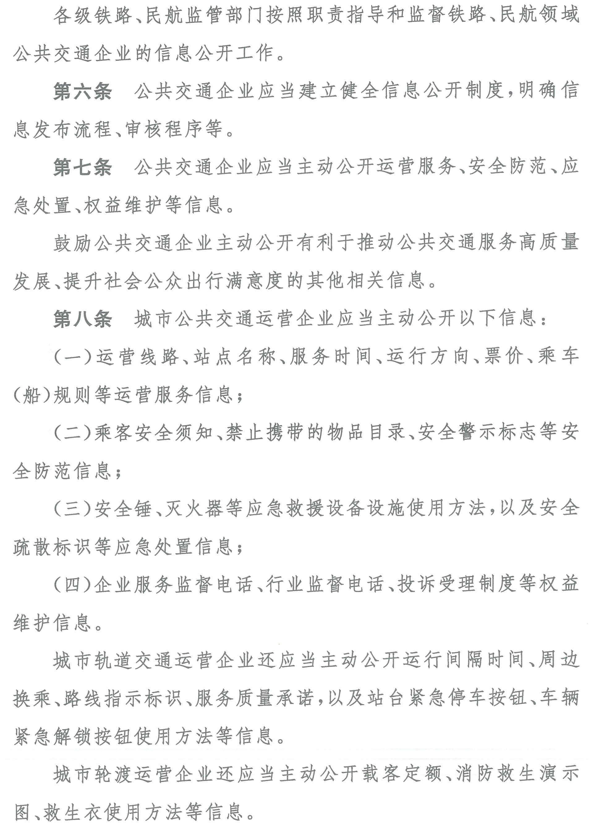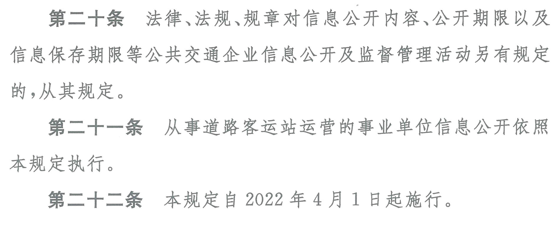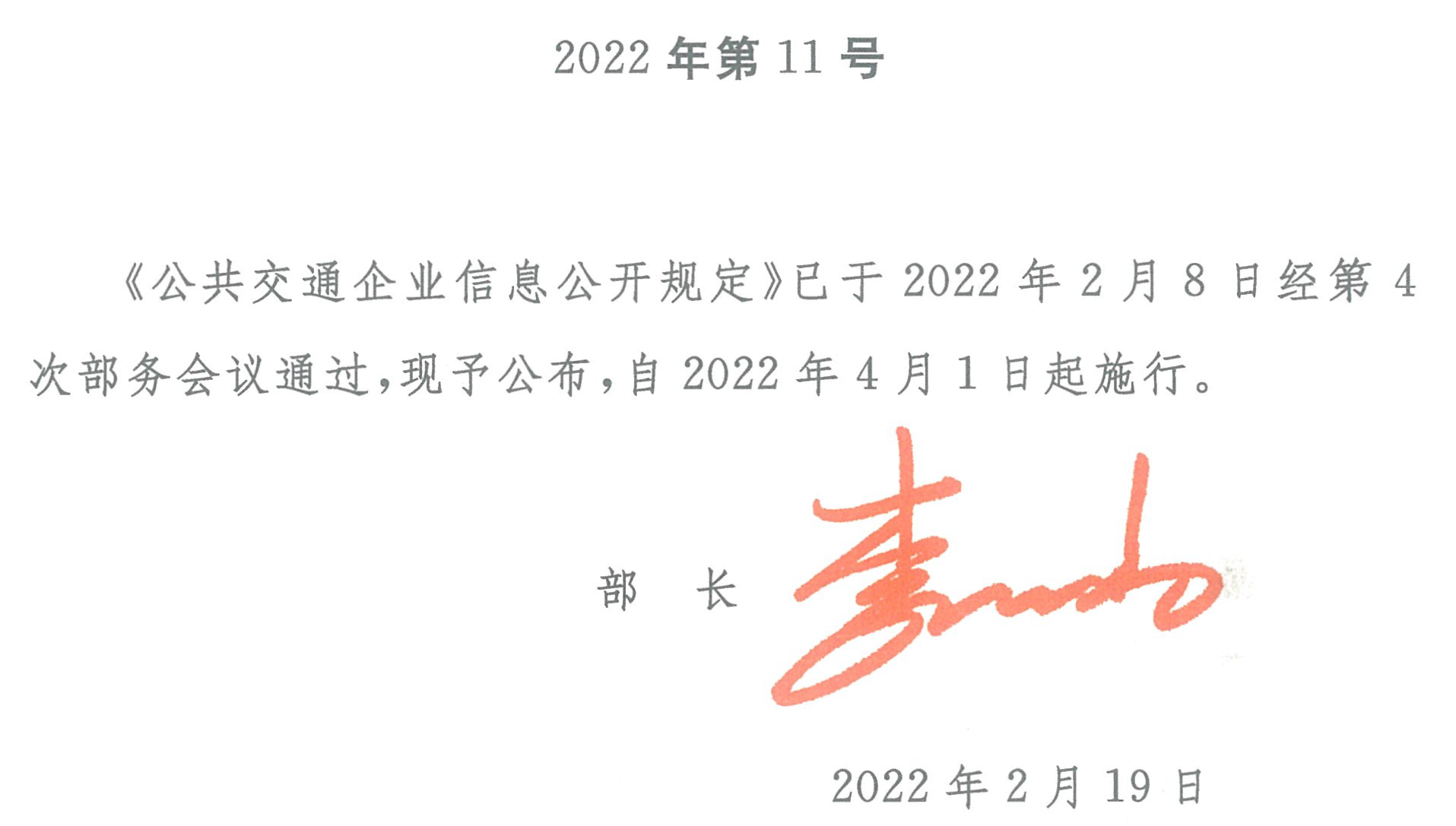 《公共交通企业信息公开规定》(交通运输部令2022年第11号)